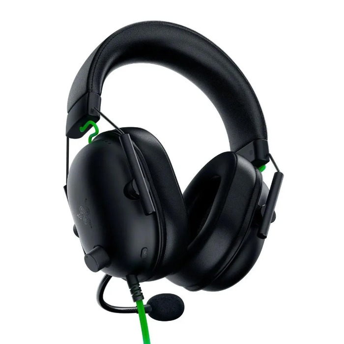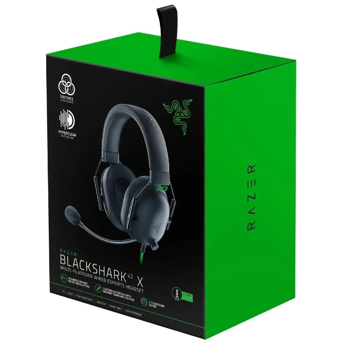 Игровая гарнитура Razer Blackshark V2 имеет увеличенное по толщине оголовье, облегченный каркас, а также большие овальные амбушюры. Последние выполнены из специального воздухопроницаемого материала, который сводит к минимуму накопление пота и тепла при контакте с кожей. Модель была протестирована профессиональными геймерами, в результате чего производитель подобрал идеальный вес для длительной игры и максимального удобства использования. Она подключается посредством аудиоразъема 3.5 мм и является кроссплатформенной.