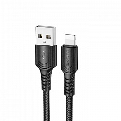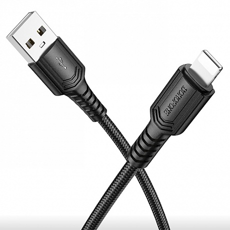 Lightning - кабель 1.0m Borofone BX116 Certain (Black 2,4A нейлоновая оплетка) 6941991119743