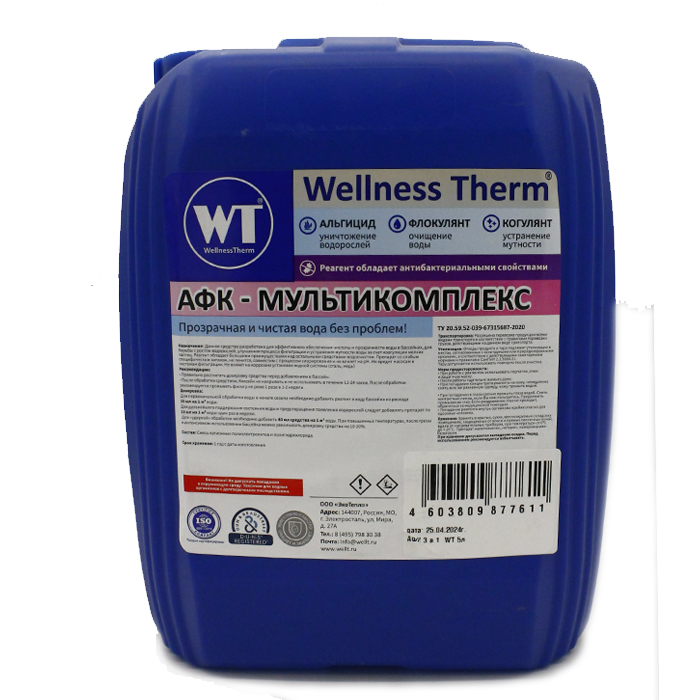 Средство Wellness Therm АФК - мультикомплекс 10л 877628 для бассейна альгицид, коагулянт, флокулянт